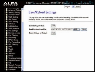4. Go to Advanced Setting -> Save/Reload Settings.