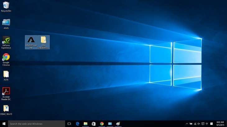 For example here save the unzip Windows 10 driver and Alfa WiFi Scanner at Desktop