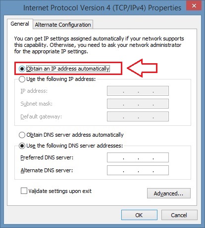10. During Update In progress, go back to Ethernet adapter setting and choose “ Obtain an IP address automatically” then you should able to access your ALFA device