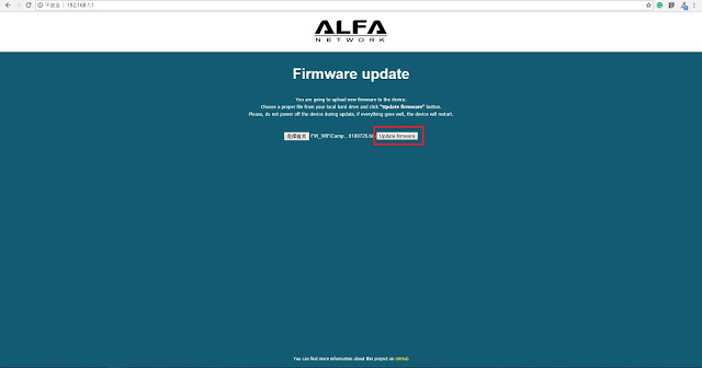 9. Use “Browse” button to choose the right firmware then click “Update firmware” button and wait about 3 minutes until device fully upload and reboot