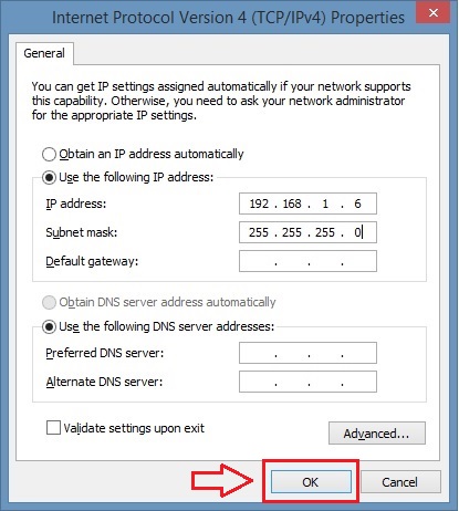 6. Enter a IP address “ 192.168.1.6” and click “ Ok “ button